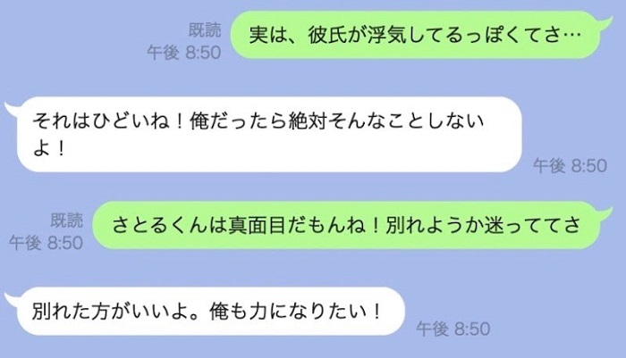 ピュアな勘違い男に、恋愛相談をする時は注意しましょう。映画などによくある、“恋愛相談をした男性と結ばれる”というようなストーリーが、彼らの頭の中で展開してしまいますから。