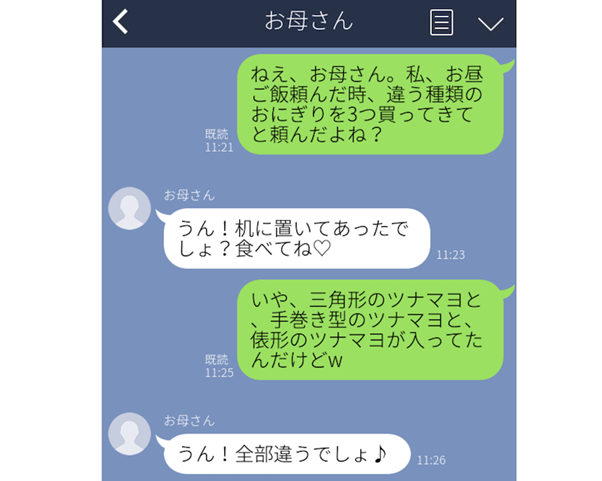同じツナマヨで三角、手巻き、俵形か…んー憎めないw うっかりさんの可愛いやらかしLINE3選