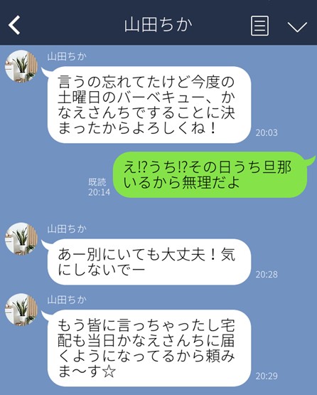 ゲッ…ママ友からの「非常識LINE」に驚愕。我が家をBBQ場にするつもり!?