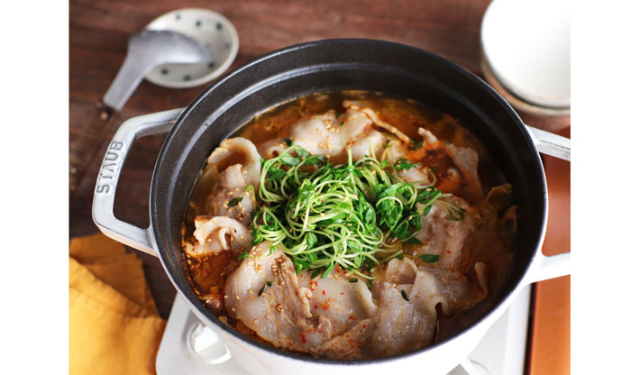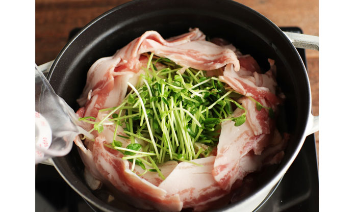 【豆苗まるごと豚バラ鍋】ごま油はひと工夫で香味アップ!