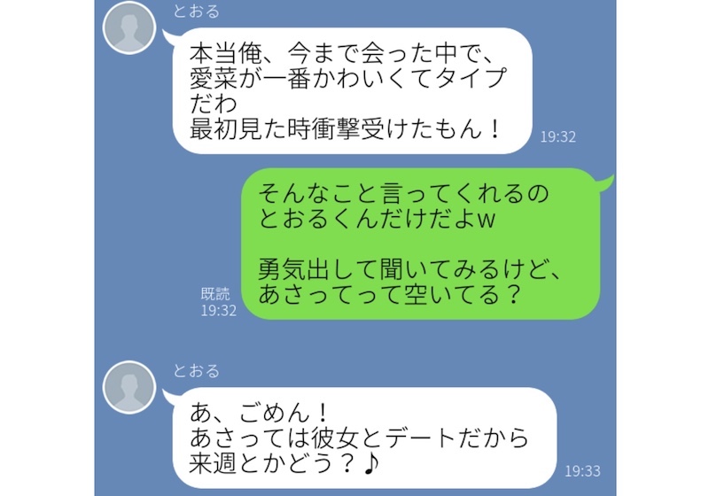 いるんです……。周りの女性に気を持たせるようなことを言うくせに、彼女一筋の男性。誰がどう見たって口説いてるでしょ! という内容のLINEに嬉しくなって勇気を出してデートに誘ってみたのに、切なすぎますね。