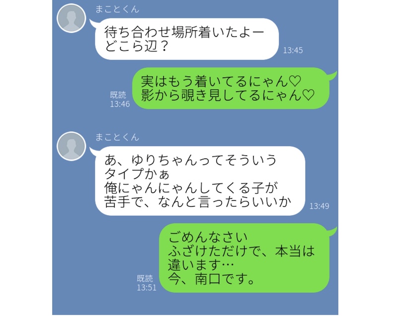 デートを何度か重ねているのに、なかなかお付き合いまで進展しない2人。ついに彼女が意を決して、“にゃんにゃん言葉”で、思い切り甘えてみたそう。ところが、彼はそういう言葉を使う女の子がどうしても苦手らしく、不快感を隠さずに言葉にしてしまったようです……。