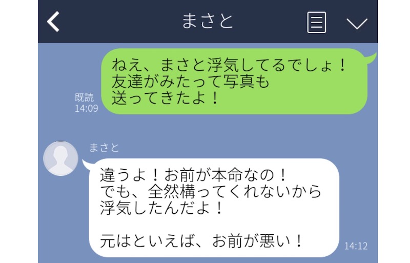 遊びの女性に浮気がバレた時、男性はいったん「お前が本命だ」と嘘をつくことが多いです。さらに「構ってくれなかったから浮気した」と、相手に責任を押し付け、自分は被害者のフリをして離れていくのです。