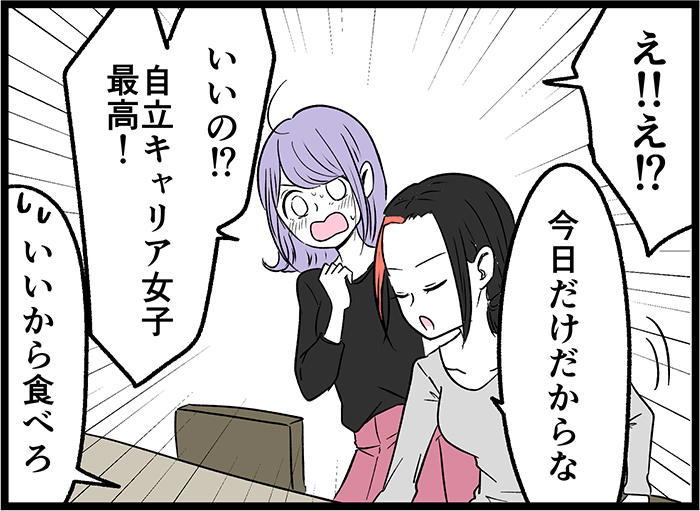 リコの高校時代からの友人で、同じ会社の別部署で働いている。リコの失恋を知り、彼女にできる方法で励ましてみた模様。おいしいは絶対正義なんだよ。