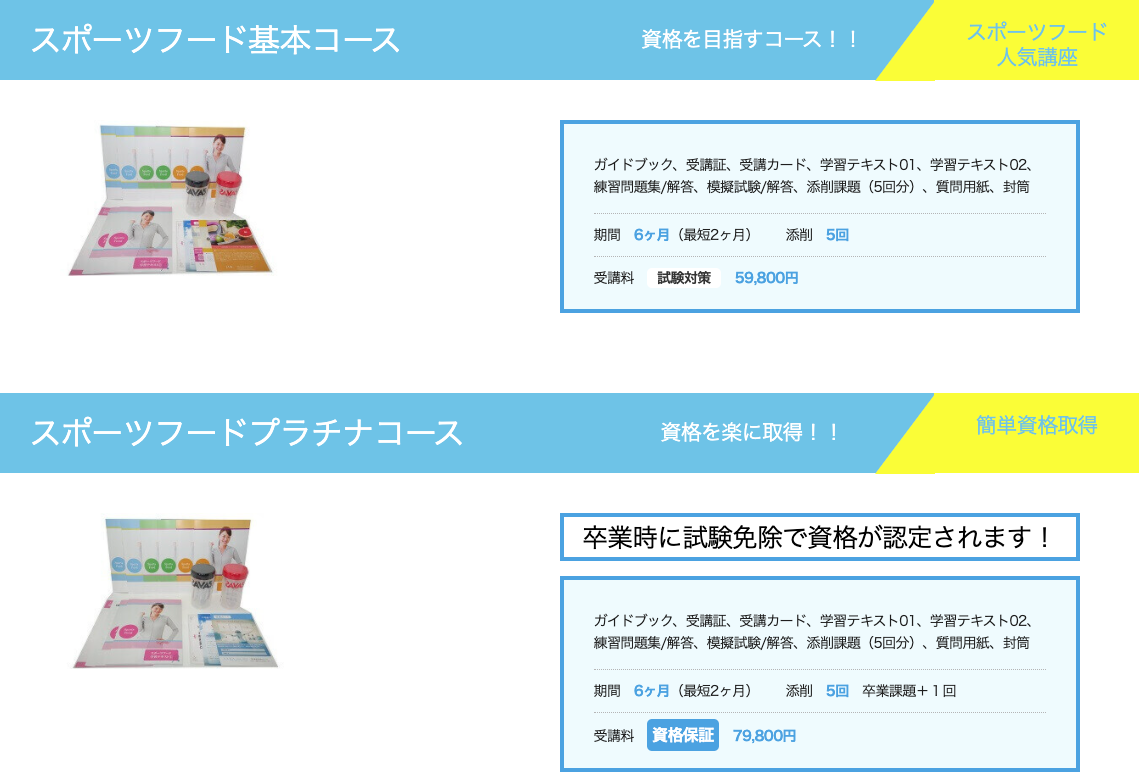 そこで、今話題のW資格取得できるおすすめのスポーツフード資格講座をご紹介します。