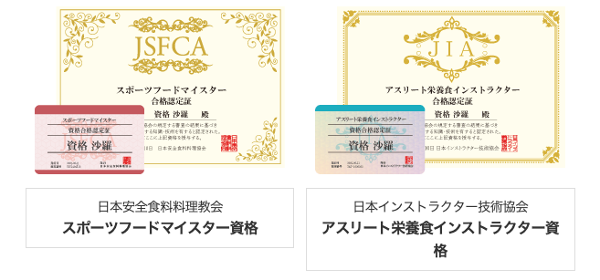 スポーツフードマイスター資格は、日本安全食料料理協会(JSFCA)が認定する資格のひとつ。JSFCAは食品や料理、食育についてのさまざまな資格を認定している機関で、「食文化の有効活用を行うことができる人材の育成」を目的として運営されています。