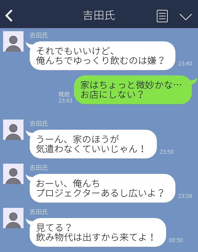 既読スルーされてもまったくめげずに、おうちデートに誘う吉田氏。