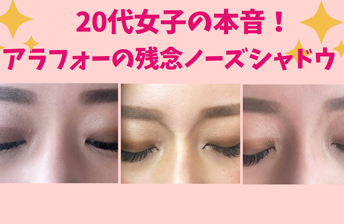 眉から鼻にかけてノーズシャドウを入れることで、簡単に彫りが深いハーフのような目鼻立ちの顔に見せられるため、最近では数年前に比べ、筆者周辺のアラフォーにもノーズシャドウメイクをする人が増えてきています。