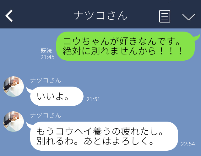 ところが、妻からの返信は「いいよ」とあっさりしたもの。それもそのはず、実は不倫相手の男性は定職についておらず、妻からのお小遣いで生活していたというのです。妻からすれば、厄介払いができてラッキーだった?