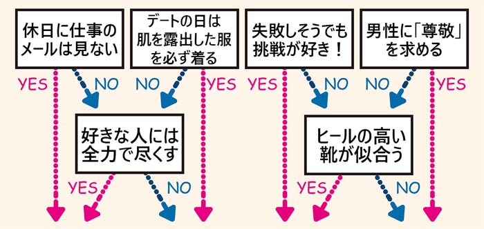周囲から「かっこいい」といわれることが多く、ずばり「できる女」。ストレスがたまり、お疲れモードになると、カッコよさが薄れ、「疲れている」感が外見にも出てしまうので要注意!