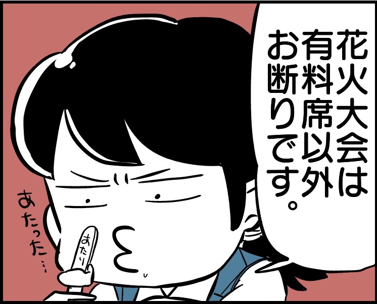 大学時代、東京の花火大会に一度行って以降はお誘いを断っている。屋台は好きだが、たこ焼きに30分間並ぶ恐ろしさを知る。じゃがバターは大きいジャガイモのものでないと許せない。
