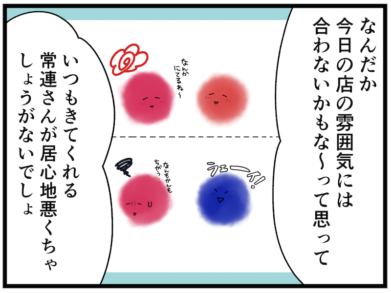 席は十分確保できる状態だったし、売り上げだってたくさん見込めてラッキーなはず。それでもママは「今日はごめんね」と断りました。なぜかと聞いてみると、今の空気感を壊したくなかったからだそう。