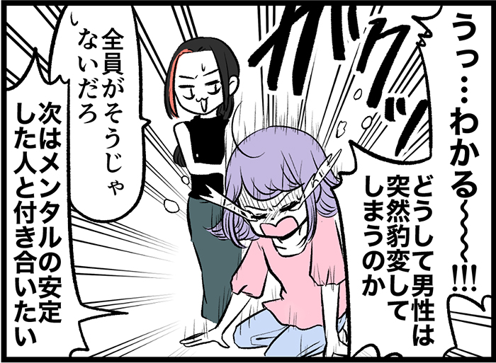 豹変とまでは言わなくても、パートナーが精神的に不安定になることは誰しも経験があると思います。私の元夫はモラハラではありませんでしたが、離婚の話が出た時は仕事を頑張りすぎた結果、メンタルが不安定でした。