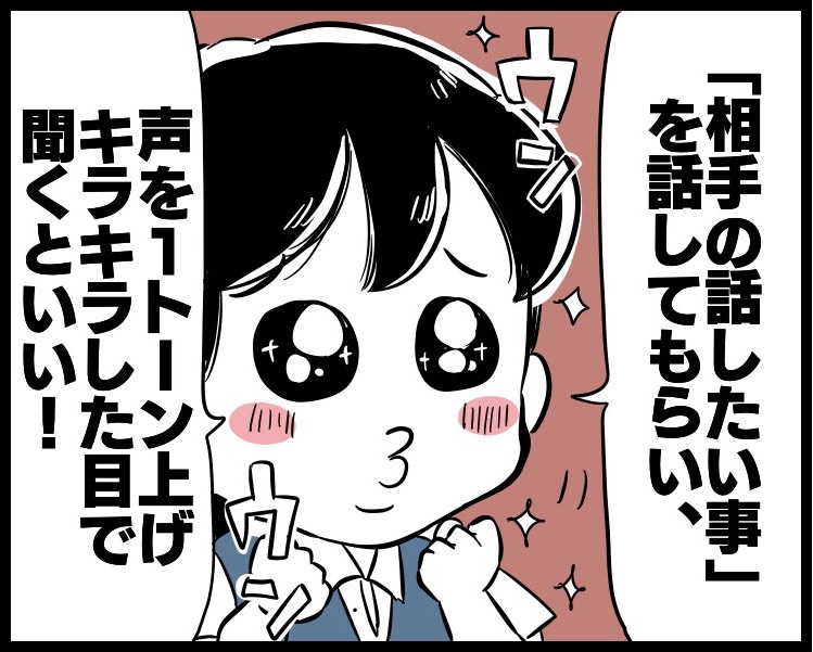 相手が話したいことを話してもらい、目をキラキラさせながらうなずく
