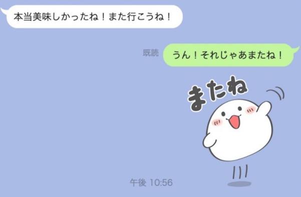 この方法は、LINEを終わらせる理由を伝えていないため、どうしても唐突な印象があります。また、「明日」でも「あとで」でもなく「じゃあまた」という部分が、次にいつLINEを送っていいのか相手を混乱させてしまうでしょう。
