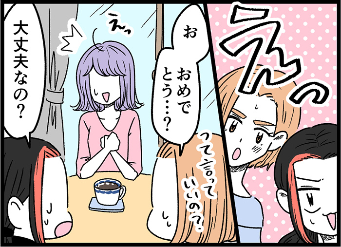 離婚から立ち直りたいアラサー。離婚した自分を受け止めてくれてまっすぐな想いを伝えてくれた同僚の柏原さんに、閉ざした心を開いてみようかなと決意したんです!友人たちにも祝福してほしかったのになぁ……。