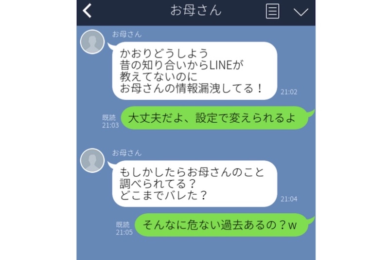 お母さんは、なぜか情報漏洩に怯えがちというあるあるです。スマホのことがいまいちわかっていないので、下手したら全世界に自分の過去がばら撒かれている!とまで思ってしまうようですね。こちらのお母さんには、相当危ない過去があるようです……。